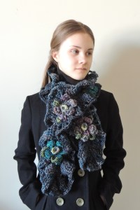 hand painted garden scarf grey blue3