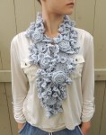 I use many different yarns and add the unique touch with embellishments and styles of the accessories. The Accessories include Scarves, Shawls, Sweaters, Fingerless Gloves, Mittens, Hats and other specialty items. High end yarns such as Hand Painted yarns, Merino Wool, Alpaca, Llama, Hand Spun Yarns, Silk, Cashmere, Organic Cotton, Cotton, Linen, Bamboo are used. A combination of both knitting and crochet complete these pieces. Many of my designs are one of a kind and I do specialty work for other companies such as the Alberta Craft Council, Art Gallery of St. Albert, the Opera Art Project and more. Many of my designs come from various inspirations including nature and man made alike. To keep my designs unique I designed everything by myself, I do not use other peoples patterns in my work. I love the challenge of making something new and just taking some yarn and needles and working away to see what comes from within that day. It is very freeing to design this way. I never have enough time to design everything I am inspired by.