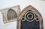 With a 3 D effect in the crochet I have added some shading and depth to this beautiful window. I have used two different techniques to achieve this look one style on the frame of the window and another on the circles as I begin to build the stone tracery of this intricate window design. The pieces are not sewn on yet and will have a more finished look once I do down the road. I think I will design more of the stone tracery before I start sewing the pieces on to make sure I like where it is going in scale etc.