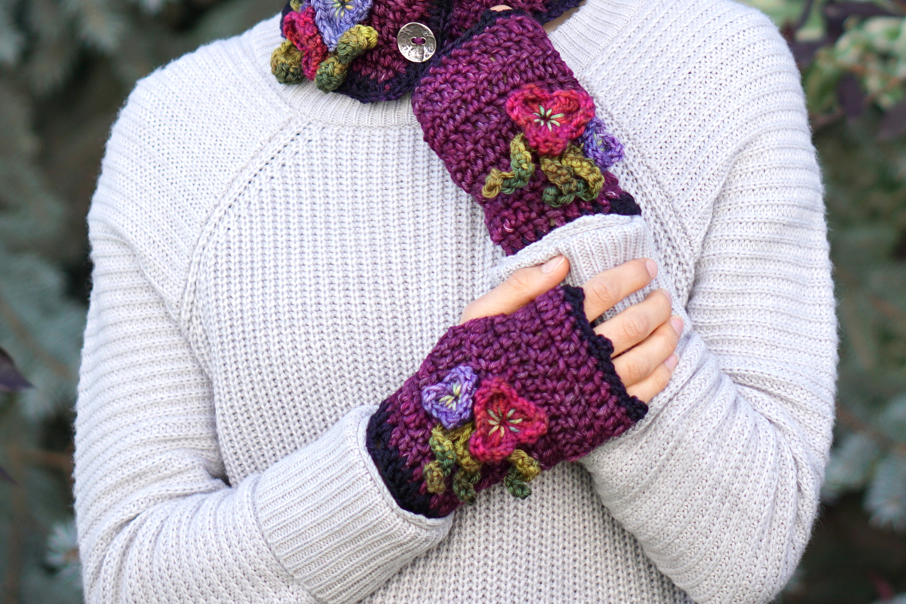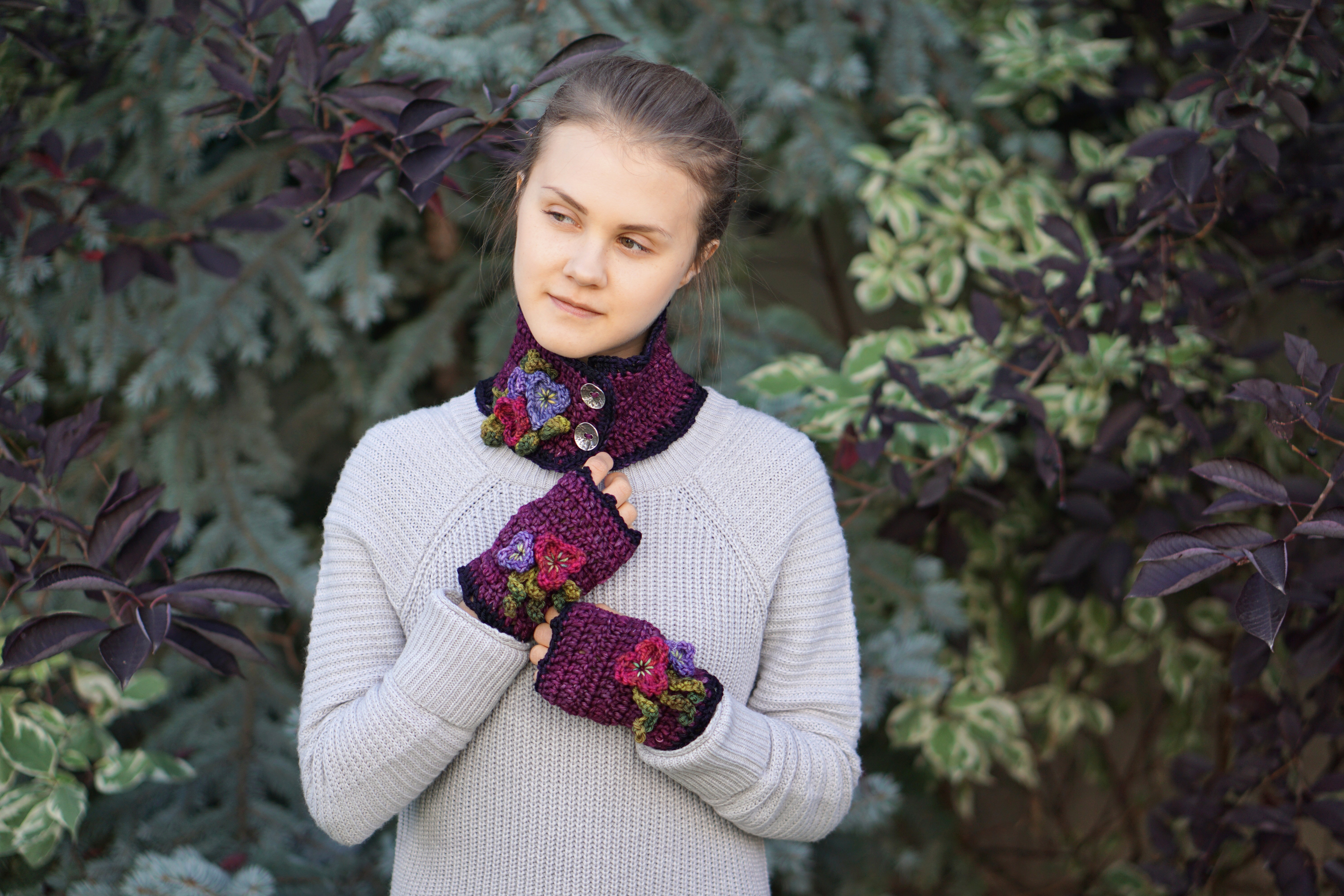 pansy collar scarf mulberry2pansy hand warmers mulberrypansy collar scarf mulberry5pansy hand warmers mulberry1pansy hand warmers mulberry3