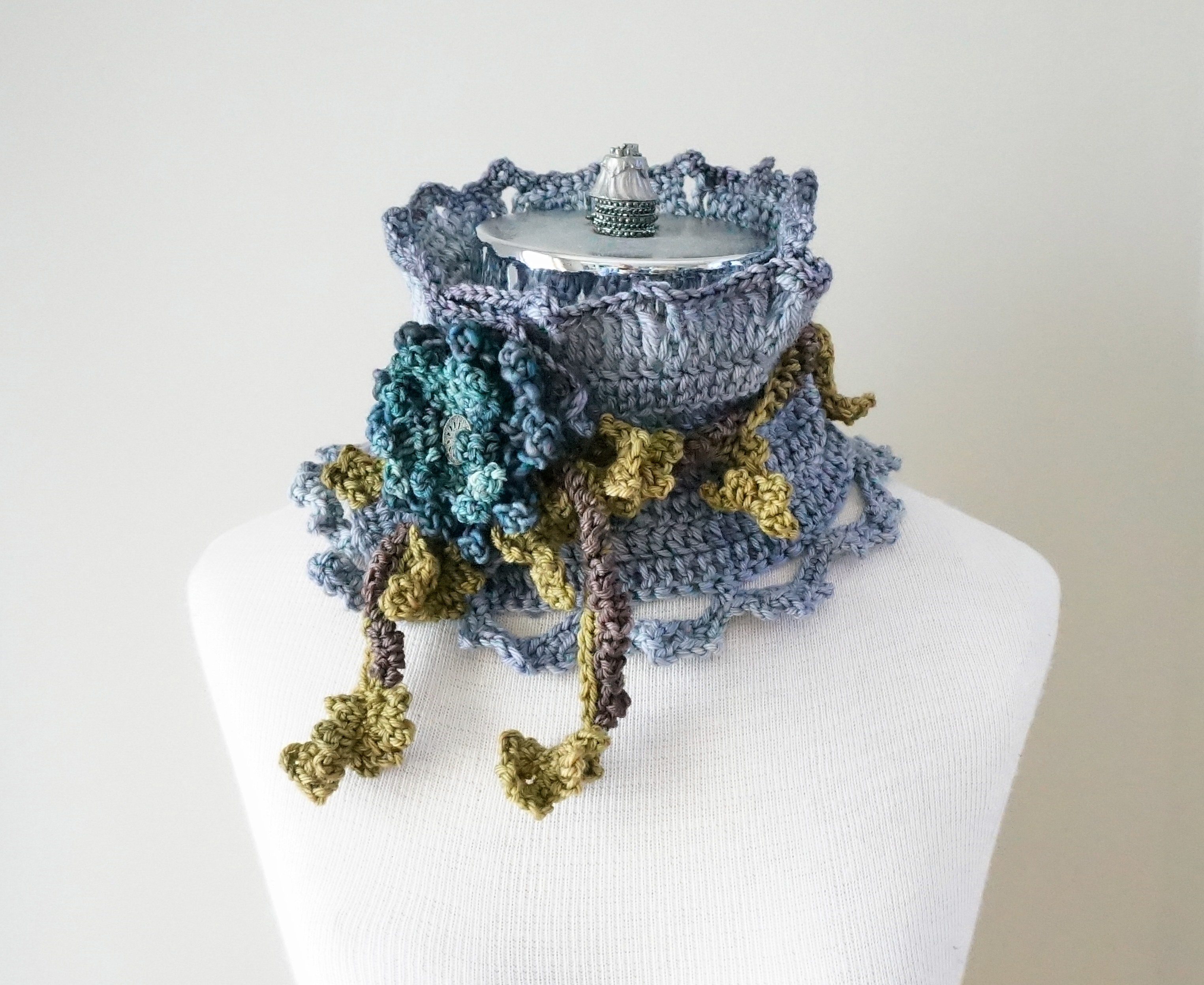 floral frieze collar scarf grey blue green brown5