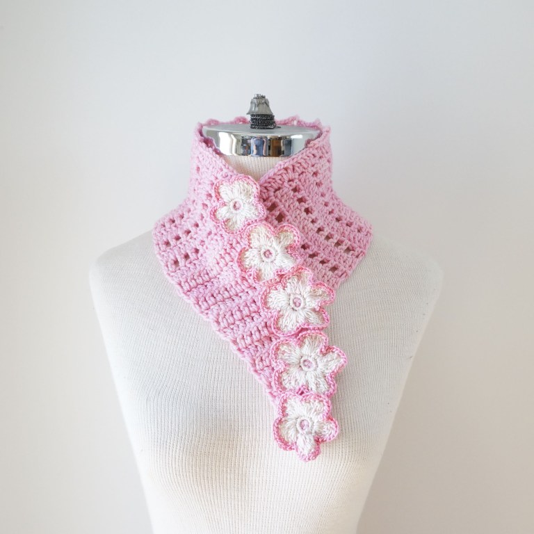 Available in two styles: the Blossom Eyelet Collar Scarf and the Blossom Infinity Scarf.
