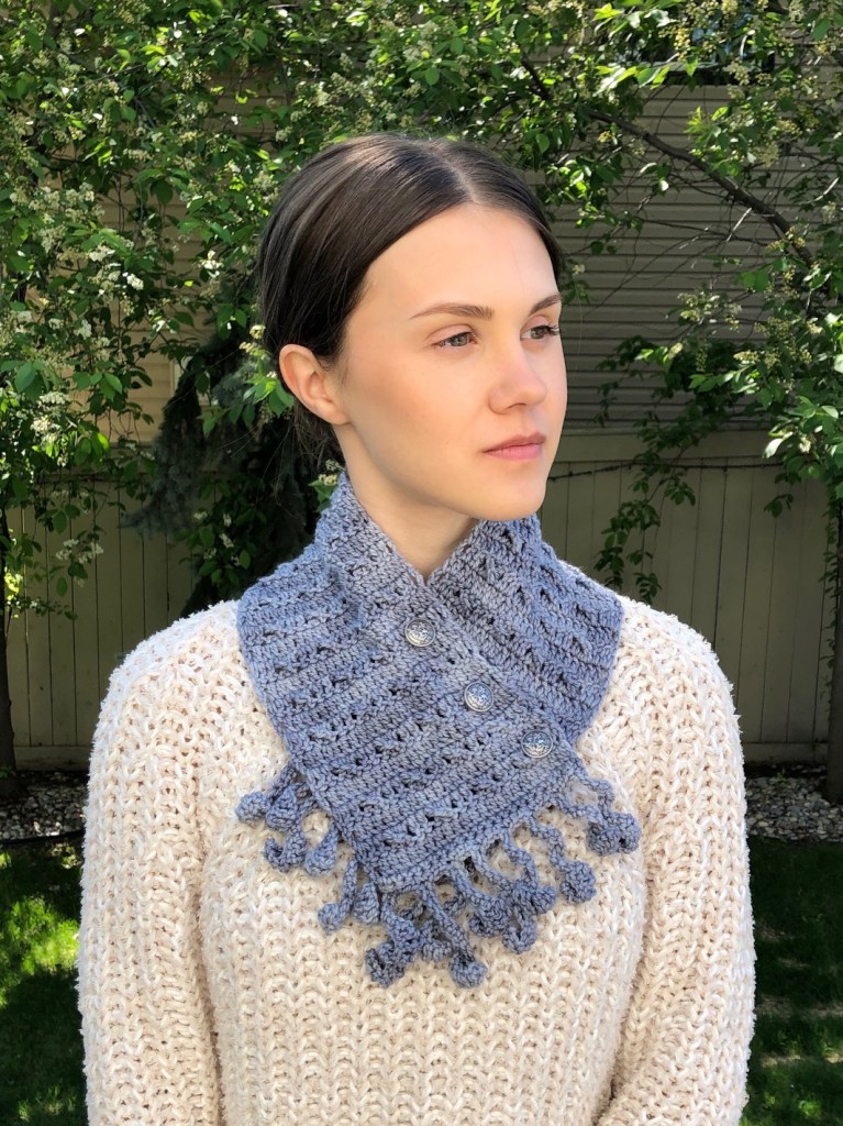 BUTTONS: Need 4 buttons (3 for the outside of the scarf and 1 for the inside). Use a 7/8 inch or 22 mm buttons or 11/16 inch or 18 mm button. Both sizes with work.