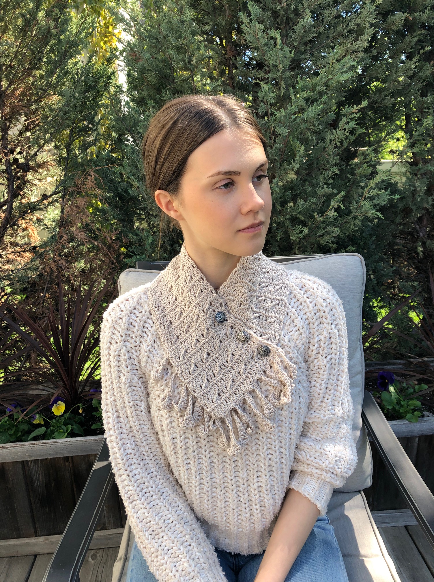 BUTTONS: Need 4 buttons (3 for the outside of the scarf and 1 for the inside). Use a 7/8 inch or 22 mm buttons or 11/16 inch or 18 mm button. Both sizes with work.