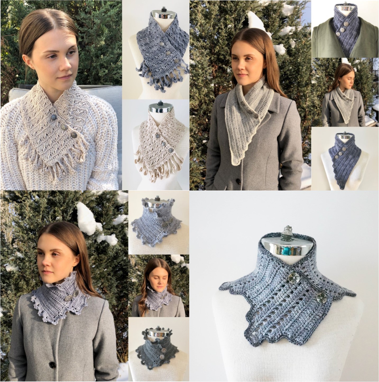 The Timeless Scarves Crochet Pattern Collection: includes 4 patterns with an timeless design and a modern yet vintage touch. Each pattern is designed by Valerie Baber Designs adding a unique touch to your wardrobe. Includes the Modern Essence scarf, Modern Edge scarf, Victorian Essence scarf, Contemporary Fringe scarf.