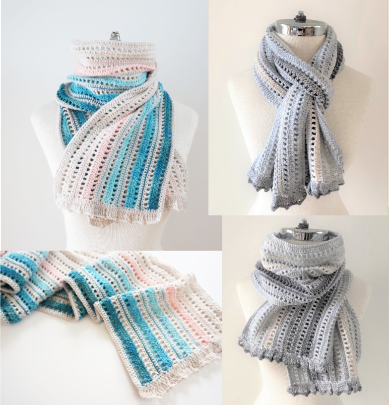Various styles of crochet patterns perfect for any wardrobe from easy to crochet to more intricate designs. Warm up the cold winter days curled up by the fireplace with a Valerie Baber Designs crochet scarf pattern.