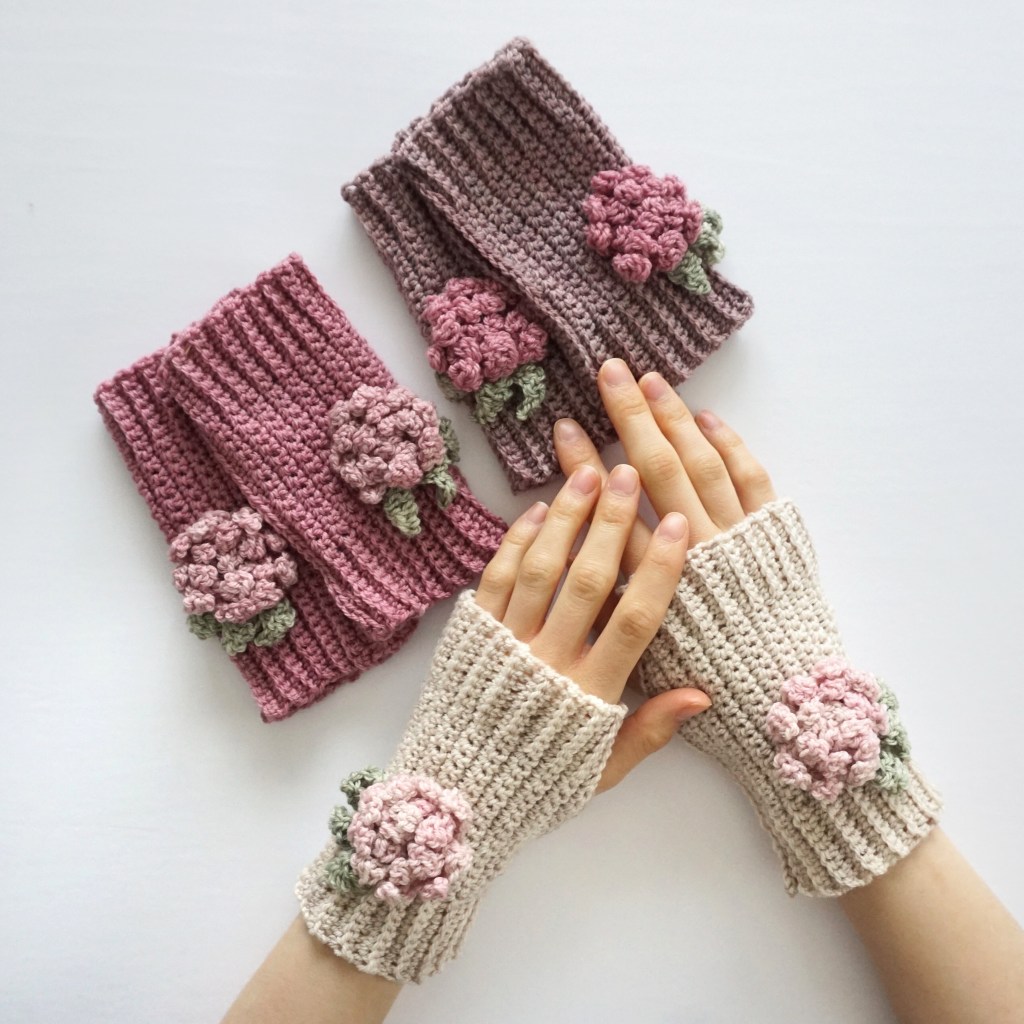 Floral Peony fingerless gloves, indoor/outdoor hand warmers, hand warmers. Floral hand warmers in 3 different colours of ivory with light pink peonies, pink with pink peonies or mauve with darker pink peonies. Handmade just for you with luxurious merino wool to keep your hands warm and cozy. A great birthday gift, thank you gift or special gift for yourself with a classic touch.