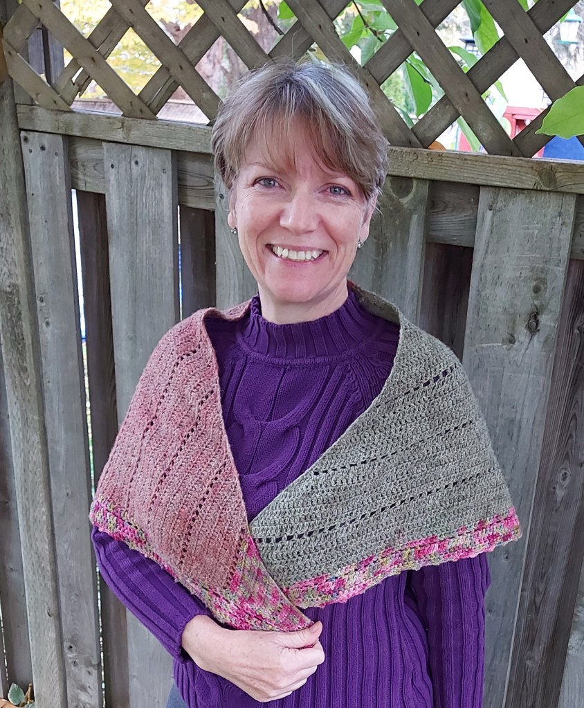 The Crochet Fade Shawl pattern was the perfect choice with beautiful changes of colours and the touch of lace. You can follow the gradient colour changes in the pattern like Nancy did or add a more varied gradient effect with more subtle colour changes like I made. This pattern is a wonderful pattern with room to add your personal style and colours to the shawl.