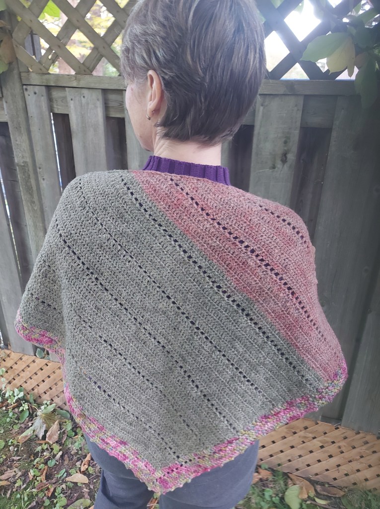 I wear my shawl often while working from my home office in the cooler weather. If I use that pattern again (and I really would like to), the only other change I would make would be to size it a little longer.