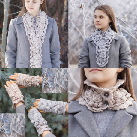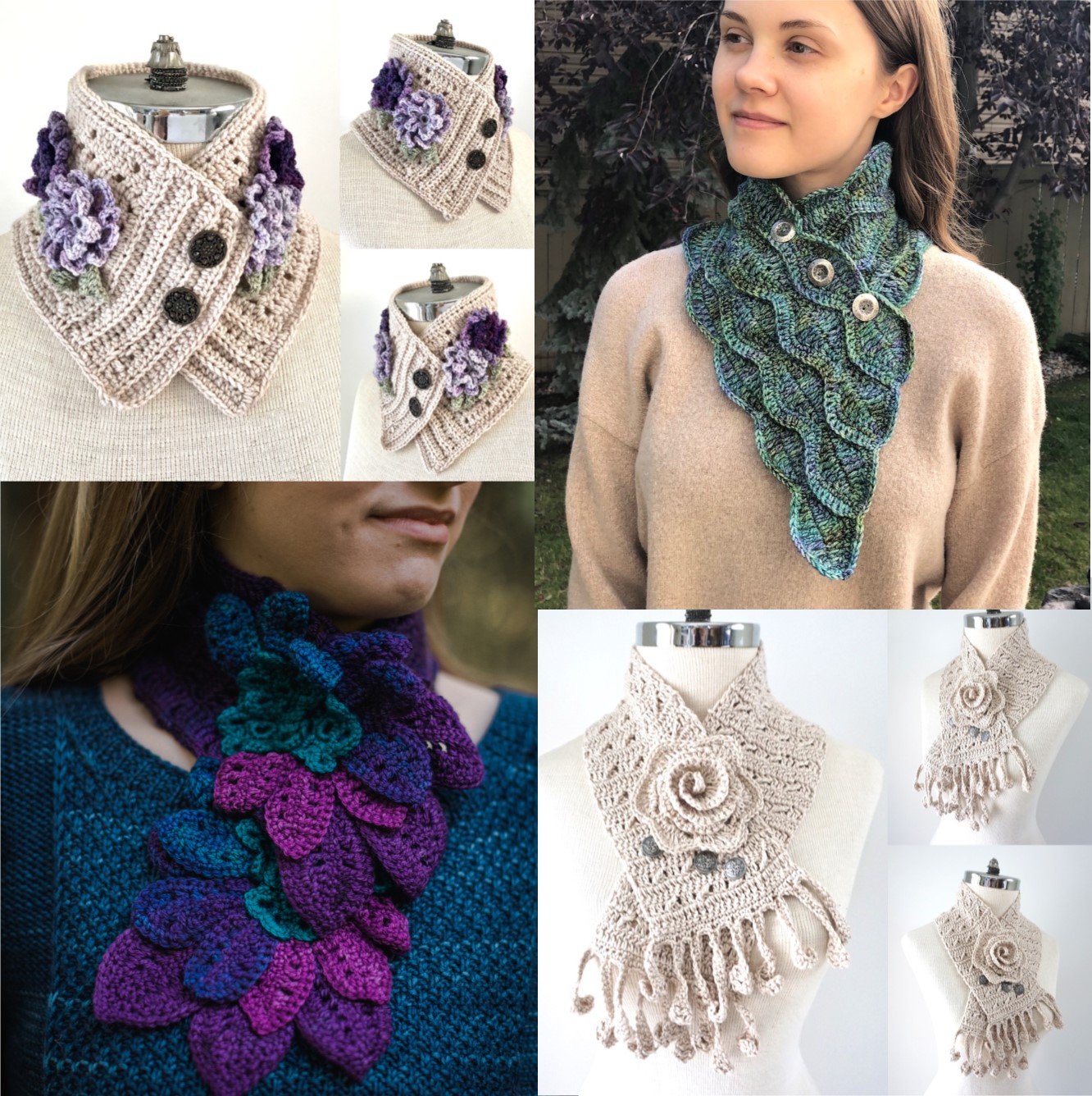 With spring on the horizon and dreaming of planting my garden with beautiful flowers to inspire my designs I woke up to a blanket of white all around. Snowing in the spring is common where I live, we call it white rain here in Alberta, Canada. I may have to wait a bit longer before planting my garden and flower pots but I will enjoy thinking and planning what colour direction I will take this year. Turns out it is a perfect day to have a crochet pattern sale to warm your week and certainly mine. Various styles are available with beautiful flowers accenting each design, or select a contemporary more modern style or a touch of lace. I have patterns for spring, summer, fall and winter. These scarves make elegant gifts for people you care about or give your self a special gift to enjoy making.