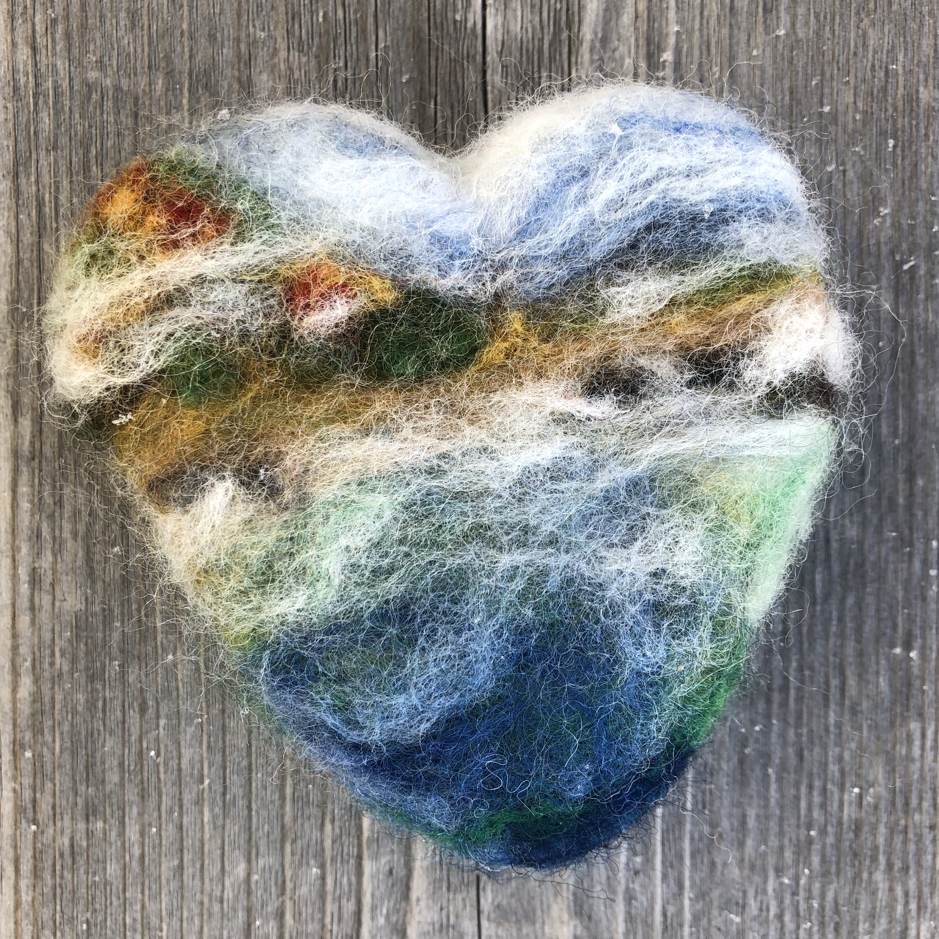 What a beautiful blog you’ve written about the felt heart. Thank you so much. I could never describe better the felt heart as you did in this blog. As you mentioned, this felt heart was crafted with in mind, our exchanges of correspondence, about the love we share for the beaches, nature, mountains, pebbles and much more of the wonders that Mother Nature embraces us in. The close up face representing the beach with the pebbles, was inspired by a gifted fiber artist, who knits are so whimsical and intricate, with nature inspired landscapes from places she loves, the flowers from her garden and the roses her mother loved. Every day, my neck and hands thank you for the hug and elegant embrace from your timeless silky soft knits.