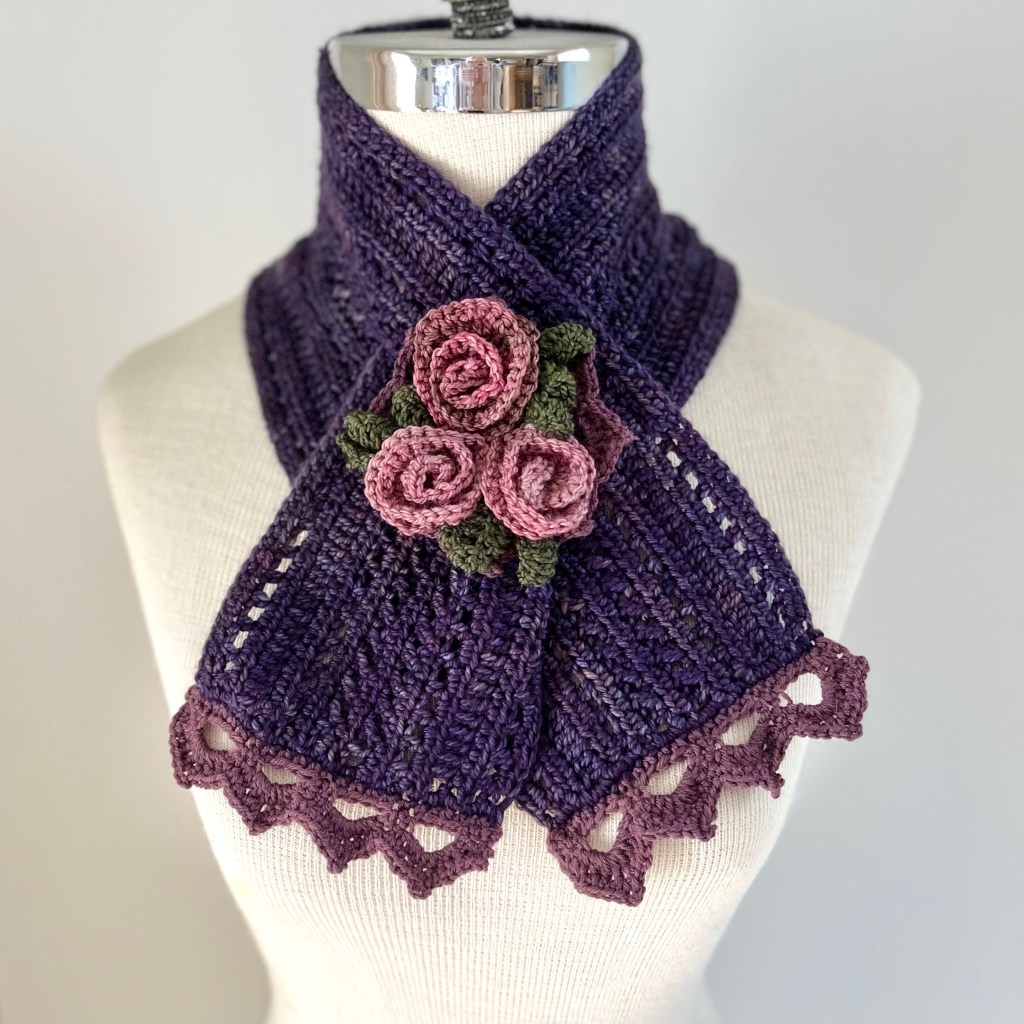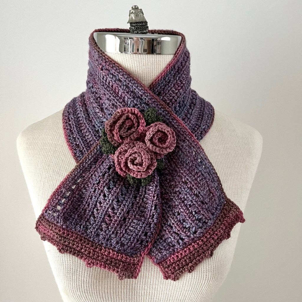 New floral scarves ready to wear perfect to warm your fall and winter wardrobe. Each design is one of a kind made with beautiful luxurious yarns. The yarn is a beautiful hand painted cashmere and merino wool blend (70% merino wool, 20% cashmere and 10% nylon). Only one of each is available. You can wear it with or without the floral rose brooch. Wear the brooch on other items in your wardrobe. The Floral Reversible Neck Warmer Scarf has a slit you pull the other end of the scarf through to fasten nicely around your neck keeping you cozy and warm on the cooler days. Other scarf styles are also available on my Etsy shop.