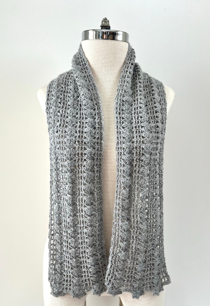 The Lovely Lace scarf crochet pattern is designed by Valerie Baber just for you to add an elegance to your day with style. Designed using sock/fingering weight yarn. A beautiful lace scarf with an accent trim on each end to finish the design. Shown in a beautiful linen and silk yarn perfect for any time of year in the pink and a lovely alpaca and silk yarn in the grey great for the cooler days. This scarf is perfect for any time of the year by changing the fibers used. Try using merino wool, kid mohair, alpaca and other warmer fibers for the fall and winter to lighter fibers like cotton, silk, linen etc. for spring and summer. A very versatile scarf design that you will wear for years to come. Other various styles of crochet patterns are available on my Etsy store.