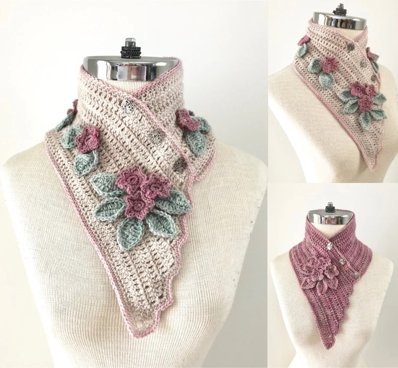 Flowers and Lace Neck Warmer Scarf: DK weight yarn