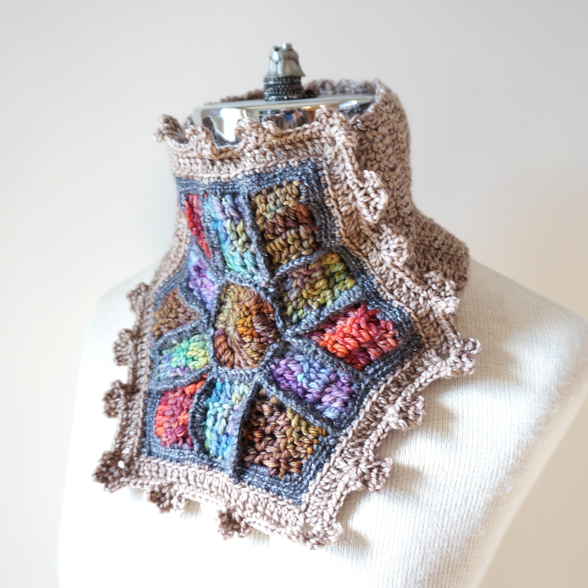 You will see a lot of inspiration from Gothic Architecture including stained glass windows (shown below), stained glass rose windows, various scarves with stone tracery and other features on these beautiful buildings. View my blog posts for more information about these designs. You will need to scroll down as some of them are much older posts. Have a wonderful fibre inspired day today!